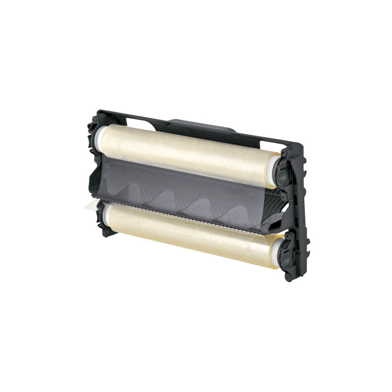 Cartucho de recarga desechable para la plastificadora en frío Leitz CS9. Contiene dos rollos con film de 80 micras que permite la plastificación continua de documentos sin límite de longitud. Se cambia muy fácilmente.