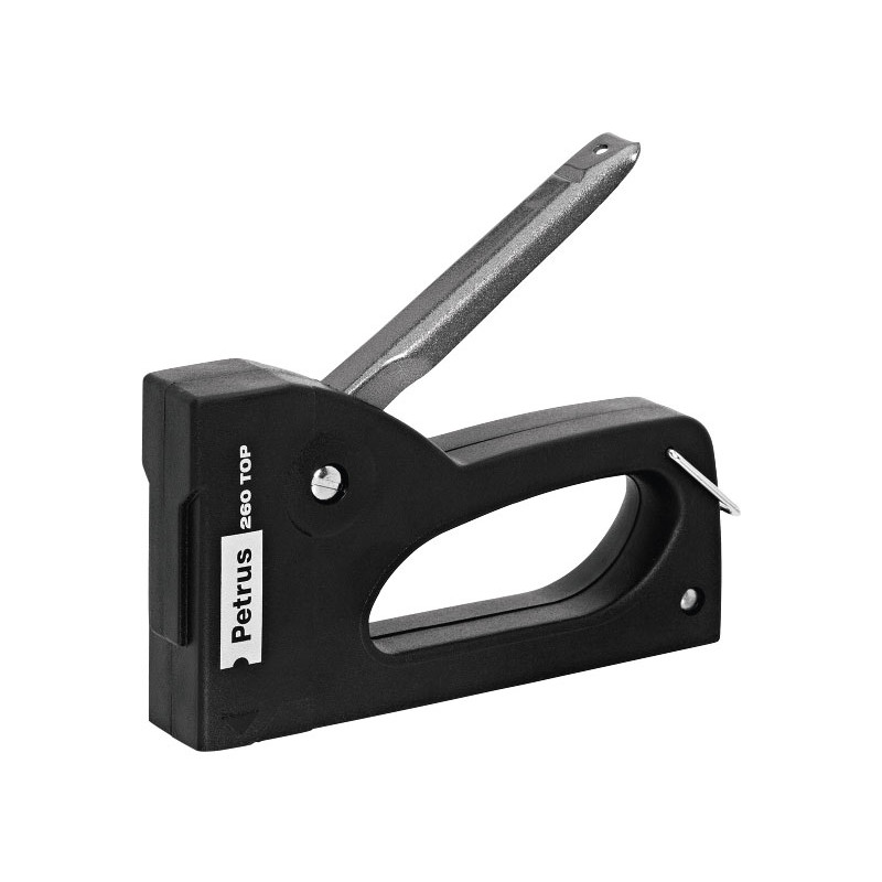 Fabricada en plástico ABS, muy resistente. Diseño actual y ergonómico. Usa grapas 530/4, 530/6, 530/8. Diez años de garantía. Color negro