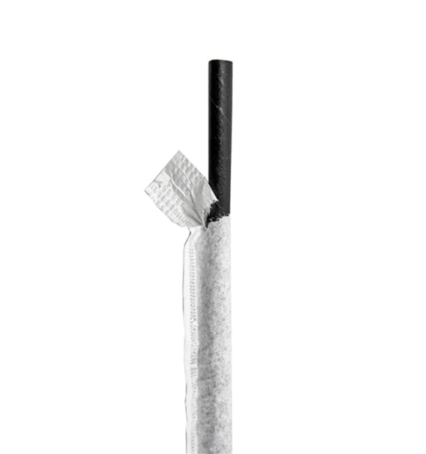 Pajita recta negra enfundada 20*0,6 cm 250 unidades