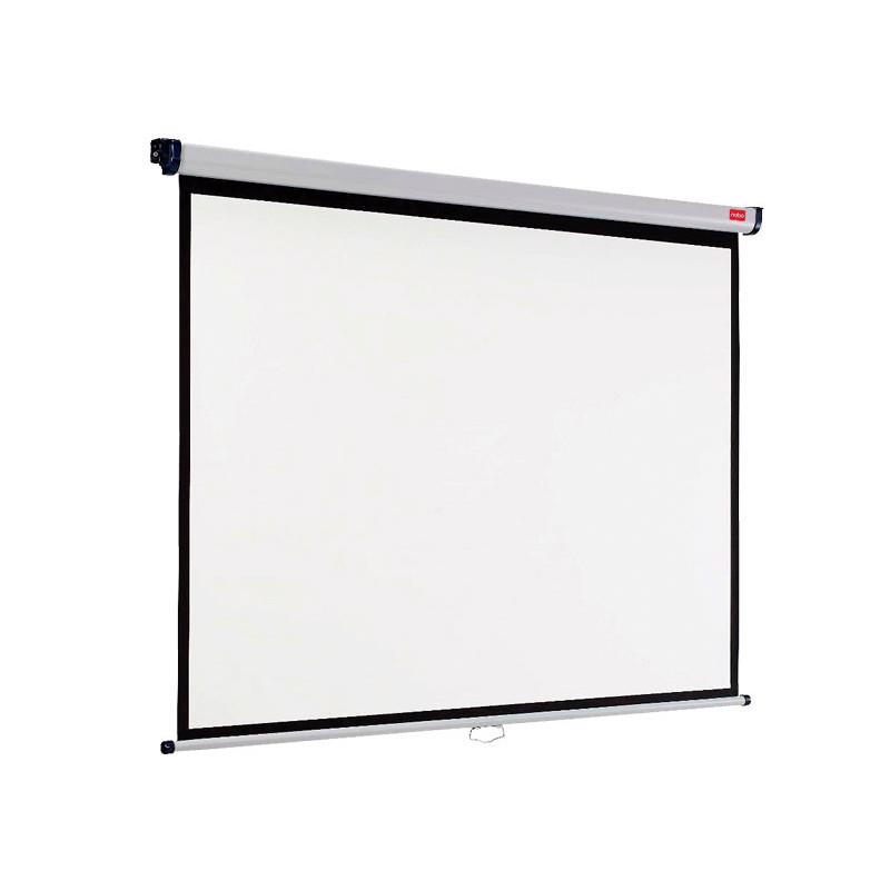 De material ignífugo mate y antirreflejos. Fuerte mecanismo de apertura y gran estabilidad. Marco de pantalla en negro para una mejor posición de la proyección. La pantalla se puede anclar tanto a la pared como al techo. Formato 4:3.