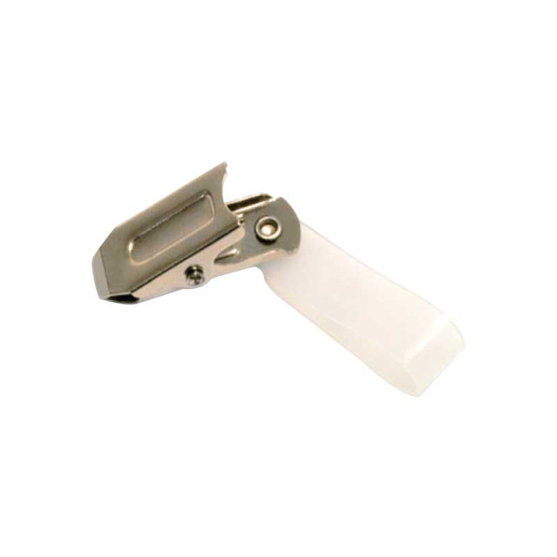 Pinzas de acero niquelado con tira de polipropileno de 12mm. Para identificación personal en todo tipo de congresos, convenciones, visitantes, etc.