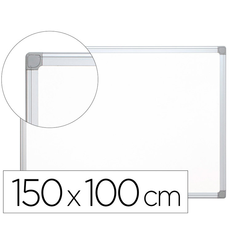 Pizarra blanca lacada magnética, con marco de aluminio. Ideal para colegios, institutos, reuniones, despachos, etc. Provista de accesorios de fijación a la pared. Utilizar únicamente rotuladores especiales para pizarra blanca.